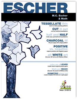 Discover how fun and artistic Math can be! Learn about impossible spaces and tessellations with graphic artist and woodcutter M.C. Escher. Draw, cut and paste pieces of complex puzzles. Fill the whole page with fun abstract shapes or animals, houses or spaceships.